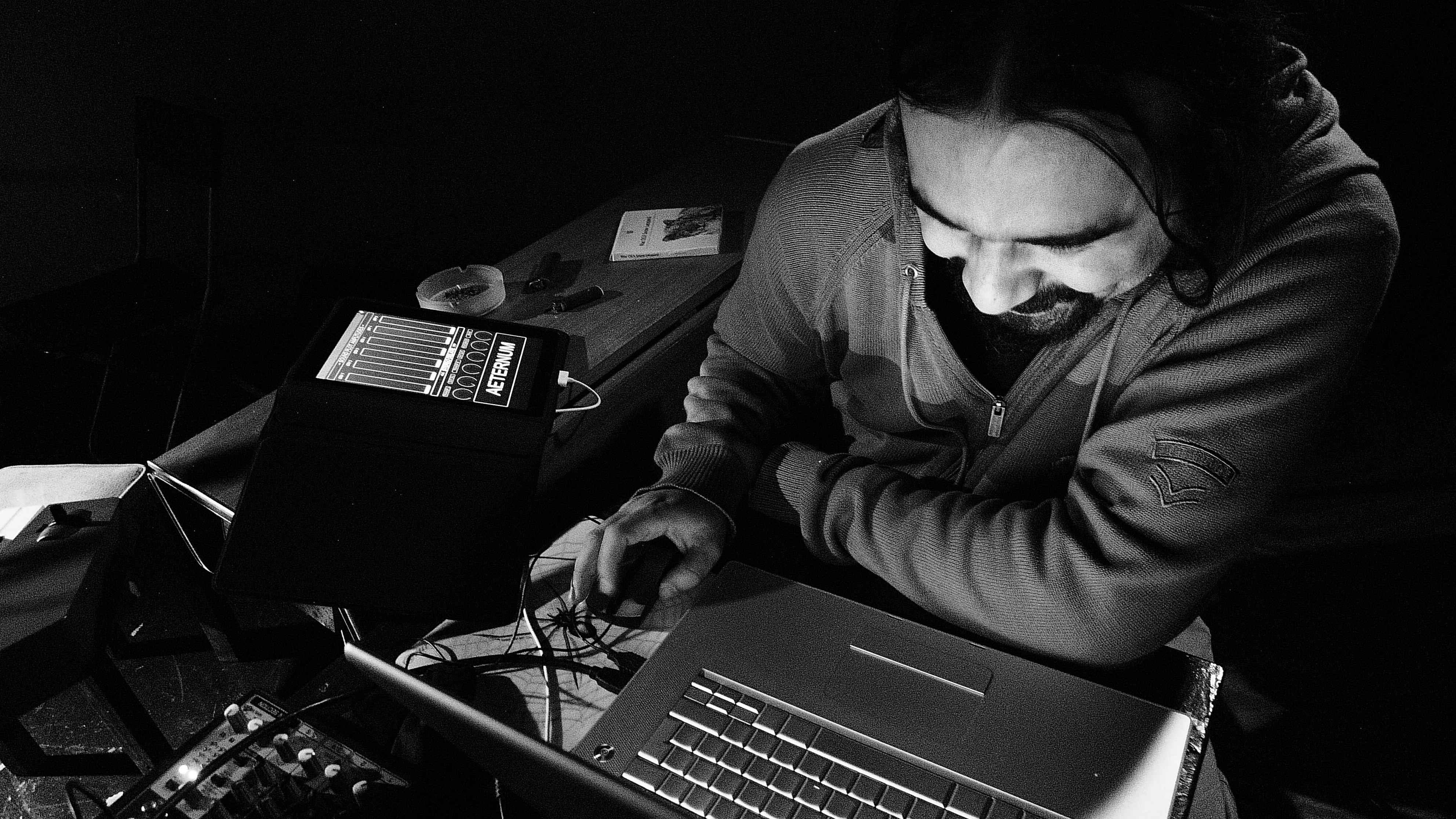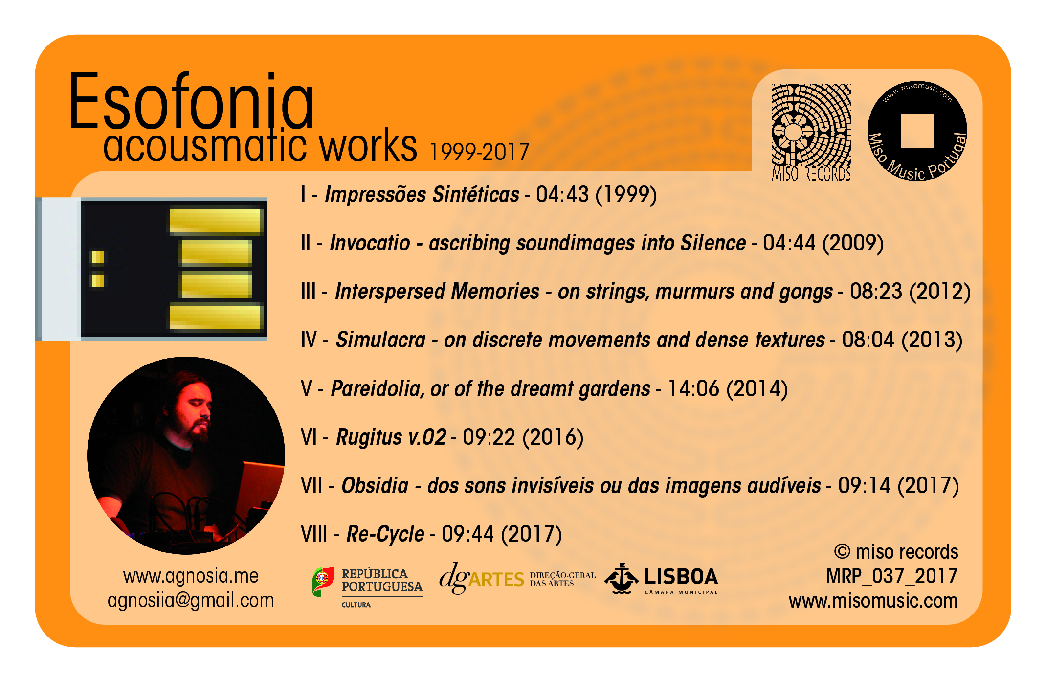 The work includes ultra-processed / distorted samples and field recordings of various origins (in an acousmatic approach), contrasted with electronically generated phrases from digital and analog synthesizers, as well as dark and luminous drones.